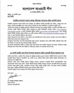 আওয়ামী লীগের দপ্তর সম্পাদক ড. আবদুস সোবহান গোলাপ স্বাক্ষরিত এক সংবাদ বিজ্ঞপ্তিতে সংবাদ বিজ্ঞপ্তিতে আরো বলা হয়েছে, জাতির জনক বঙ্গবন্ধু শেখ মুজিবুর রহমানের পরিবারের সদস্যদের মধ্যে প্রধানমন্ত্রীর তথ্য ও যোগাযোগ প্রযুক্তি বিষয়ক উপদেষ্টা সজীব ওয়াজেদ জয়ের একটি ভেরিফাইড ফেসবুক পেইজ, (www.facebook .com/sajeeb.a.wazed) ও একটি ভেরিফাইড টুইটার আইডি (www.twitter.com/sajeebwazed) এবং বঙ্গবন্ধুর আরেক দৌহিত্র রাদওয়ান মুজিব সিদ্দিক-এর একটি ফেসবুক আইডি (www.facebook.com/radwan.siddiq) চালু আছে, যা তারা নিজেরাই পরিচালনা করে থাকেন।