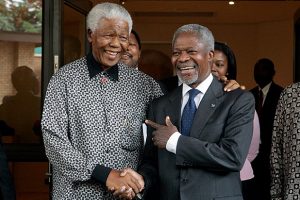 দক্ষিণ আফ্রিকার বর্ণবাদবিরোধী বিপ্লবের জনক নেলসন ম্যান্ডেলার সাথে কফি আনান