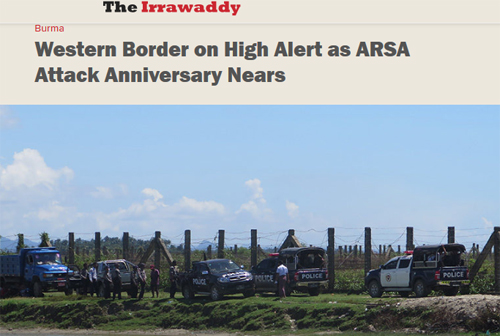 নিউজ ডেস্ক: আরাকান রোহিঙ্গা সালভেশন আর্মি’র (আরসা) হামলার প্রথম বার্ষিকী উপলক্ষে মিয়ানমার ও বাংলাদেশ সীমান্তে উচ্চ সতর্কতা জারি করেছে মিয়ানমার কর্তৃপক্ষ।