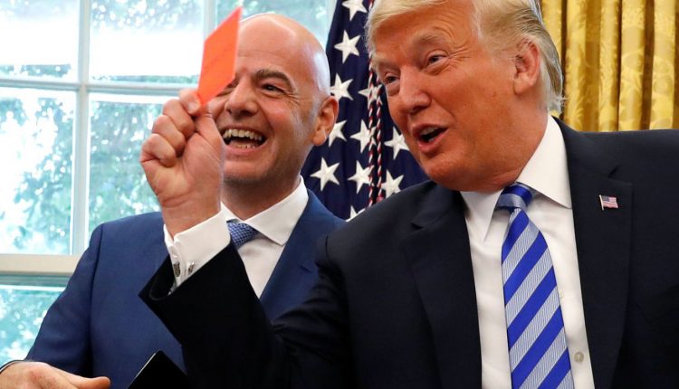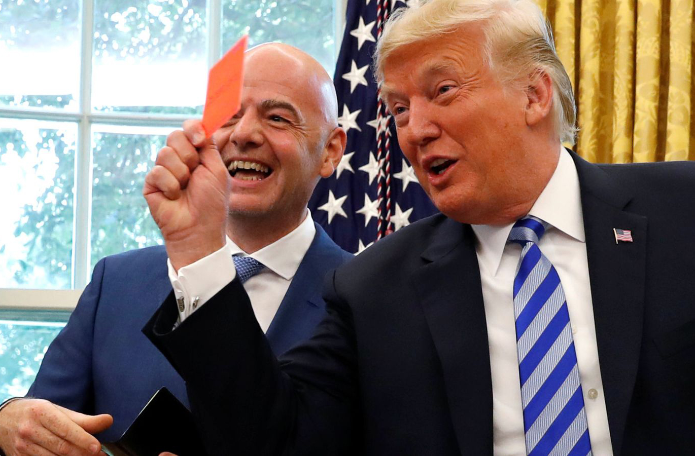 ফিফা প্রেসিডেন্ট জিয়ান্নি ইনফান্তিনোর সঙ্গে হোয়াইট হাউজে এক বৈঠকের পরপরই নিজ কার্যালয়ে জড়ো হওয়া সাংবাদিকদের লাল কার্ড দেখান ট্রাম্প।