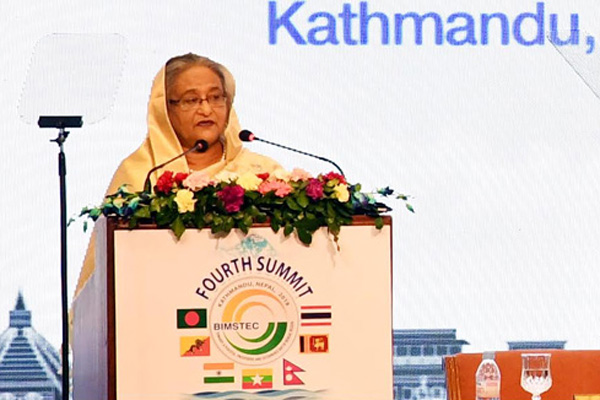 বৃহস্পতিবার স্থানীয় সময় বিকেলে নেপালের কাঠমান্ডুতে হোটেল সোয়ালটি ক্রাউনি প্লাজায় চতুর্থ বিমসটেক শীর্ষ সম্মেলনের উদ্বোধনী অধিবেশনে বক্তব্য প্রদানকালে তিনি এ আহ্বান জানান।