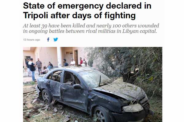 ত্রিপোলিতে ৩৯ জন নিহতের জেরে জরুরি অবস্থা জারি