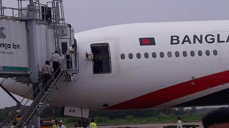 ঘটনার সময় উপস্থিত প্রকৌশল বিভাগের কর্মীদের একজন বলেন, ‘সকাল সাড়ে ৮টায় ড্রিমলাইনার দিয়ে সিঙ্গাপুর ফ্লাইট করার প্রস্তুতি চলছিল। এটি বোর্র্ডিং ব্রিজে সংযুক্ত অবস্থায় বিএফসিসি থেকে যাত্রীদের জন্য ড্রিমলাইনারে খাবার তোলা হচিছল। এ সময় প্রকৌশল বিভাগের স্টাফ মোস্তাফিজুর রহমান হঠাৎ সজোরে দরজা অন করতে গিয়ে অন্য একটি বাটনে চাপ পড়ে।