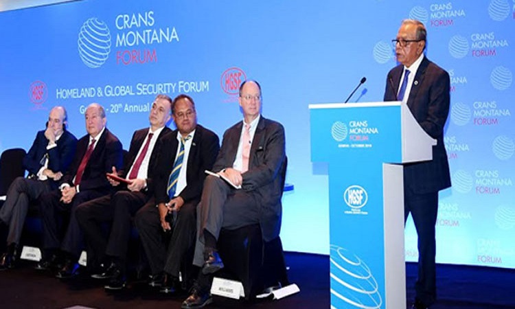 সুইজারল্যান্ডের জেনেভায় গ্র্যান্ড হোটেল কেমপিনস্কিতে প্লিনারি হলে বিশতম হোমল্যান্ড অ্যান্ড গ্লোবাল সিকিউরিটি ফোরামের ‘আন্তর্জাতিক সম্পর্ক দৃঢ় করা: শান্তি ও নিরাপত্তায় ঝুঁকি’ শীষর্ক উদ্বোধনী অধিবেশনে এসব কথা বলেন রাষ্ট্রপতি।