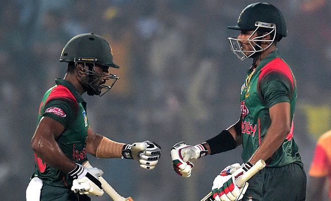 স্পোর্টস ডেস্ক: আগে ব্যাট করতে নেমে উইলিয়ামসের সেঞ্চুরিতে ভর করে বাংলাদেশের সামনে বড় চ্যালেঞ্জ ছুড়ে দিয়েছিল জিম্বাবুয়ে। অনেকেই ভাবছিলেন সাকিব-তামিম বিহীন দল এই বৈতরণী আদৌ কি পার হতে পারবে? প্রথম বলে ইনফর্ম লিটন দাস আউট হলে চিন্তা আরও বাড়ে।