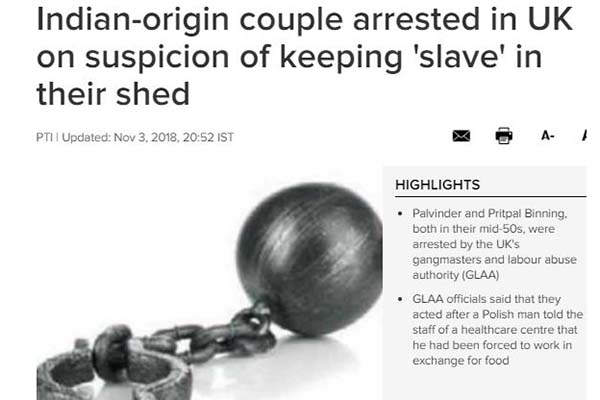 পলভিন্দর ও প্রিতপাল দু’জনেই পঞ্চাশোর্ধ। দু’জনকেই এই ব্যক্তিকে জোর করে আটকে রাখার অপরাধে গ্রেফতার করা হয়েছে।যুক্তরাজ্যের গ্রান্ডমাস্টারস অ্যান্ড লেবার অ্যাবিউজ অথরিটি (GLAA) তাদের বাড়ি থেকে দু’জনকে গ্রেফতার করে।