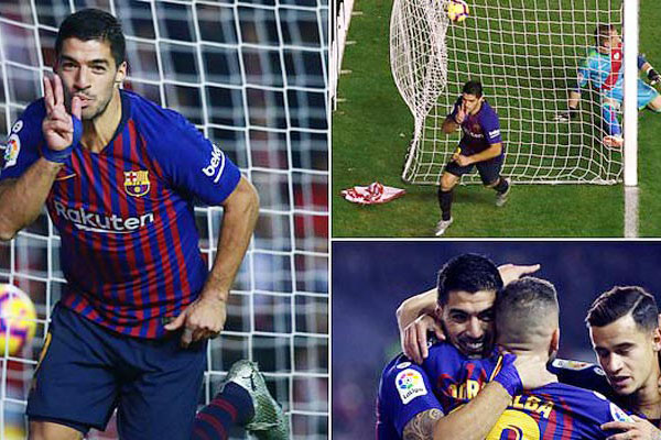 এর তিন মিনিট পরেই নিজের জোড়া গোল পূর্ণ করে বার্সাকে তিন পয়েন্ট এনে দেন সুয়ারেজ। এ নিয়ে এবারের লিগে নয়টি গোল পেলেন তিনি।