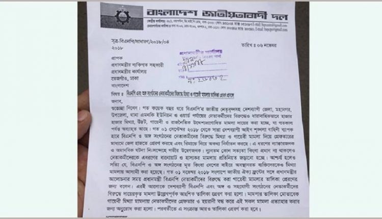 বিএনপি নেতাকর্মীদের বিরুদ্ধে ‘গায়েবি’ মামলার তালিকা প্রধানমন্ত্রীর কার্যালয়ে