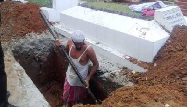 কবরকে ঘিরে শ্রদ্ধা আর হৃদয় নিংড়ানো ভালোবাসা নিয়ে উৎসুক জনতা ভিড় করে আছেন চারদিকে। এতোমধ্যেই আব্দুল মোতালেবসহ বেশ কয়েকজন গোরখোদক মিলে কবর খোঁড়ার কাজ শেষ করেছেন। আশেপাশে শ্রদ্ধা জানিয়ে ব্যানার টাঙিয়ে রাখা হয়েছে বিভিন্ন রাজনৈতিক নেতার পক্ষে।