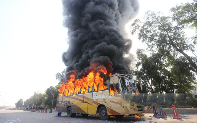 তিনি জানান, দুপুর ১টা ১০ মিনিটের দিকে বিমানবন্দরের সামনের চত্বরসংলগ্ন রাস্তায় এনা পরিবহনের বাসটি ভাংচুরের পর তাতে আগুন দেন শ্রমকিরা।