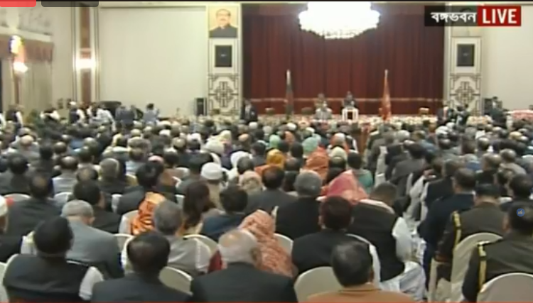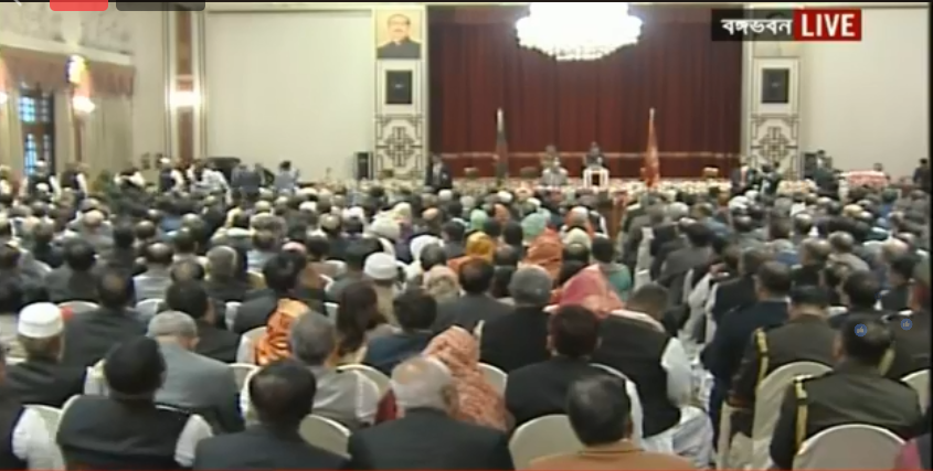 সোমবার বিকাল সাড়ে তিনটায় বঙ্গভবনের দরবার হলে এই শপথগ্রহণ অনুষ্ঠান শুরু হয়। রাষ্ট্রপতি আব্দুল হামিদ ৩টা ৪৫ মিনিটে তাদেরকে শপথ বাক্য পাঠ করান।