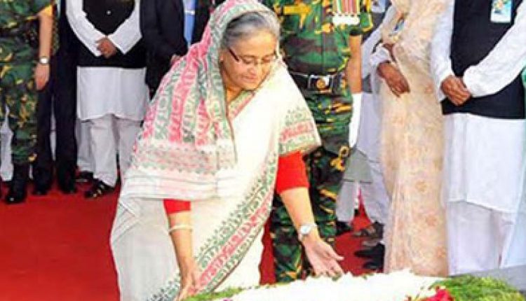 বঙ্গবন্ধুর প্রতিকৃতিতে প্রধানমন্ত্রীর শ্রদ্ধা
