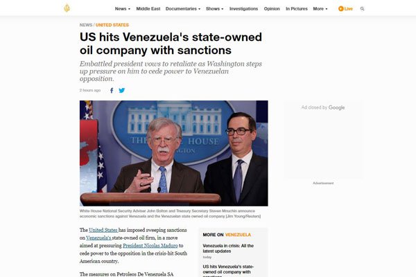 ভেনিজুয়েলার রাষ্ট্রীয় তেল কোম্পানির ওপর মার্কিন নিষেধাজ্ঞা