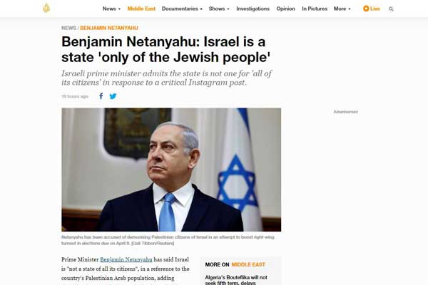 ইসরায়েল শুধু ইহুদিদের: নেতানিয়াহু