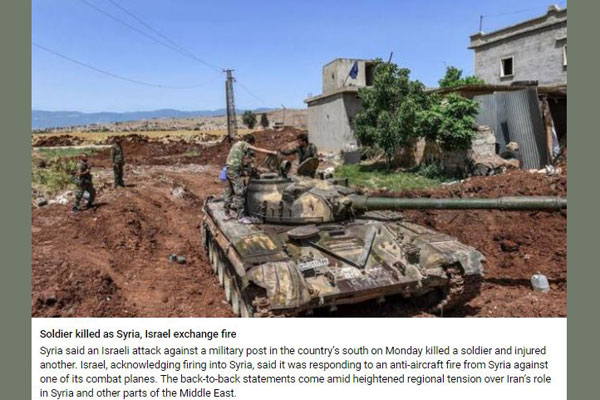 আর্ন্তজাতিক ডেস্ক: সিরিয়ার সেনাঘাঁটিতে ইসরাইলের রকেট হামলায় এক সিরীয় সেনা নিহত হয়েছেন। সিরিয়ার দক্ষিণাঞ্চলে সোমবার রাত ৯টার দিকে এ রকেট হামলা চালিয়েছে ইসরাইল। এ ঘটনায় অপর এক সেনা সদস্য আহত হয়েছেন বলে জানা যায়।