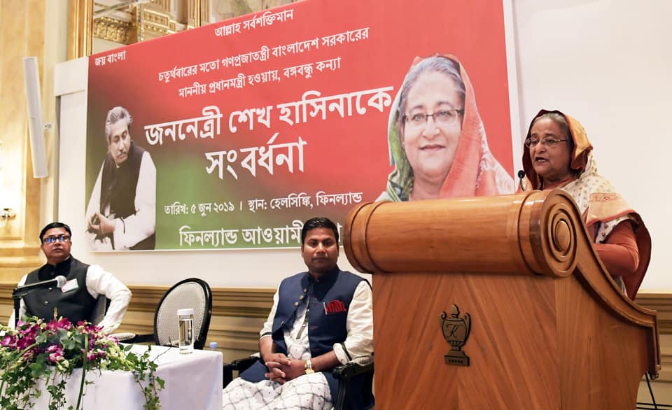 ফিনল্যান্ডে সফররত শেখ হাসিনাকে সংবর্ধনা দিতে অল ইউরোপিয়ান আওয়ামী লীগ ও ফিনল্যান্ড আওয়ামী লীগ হেলসিংকির হোটেল ক্যাম্পে এই অনুষ্ঠানের আয়োজন করে।