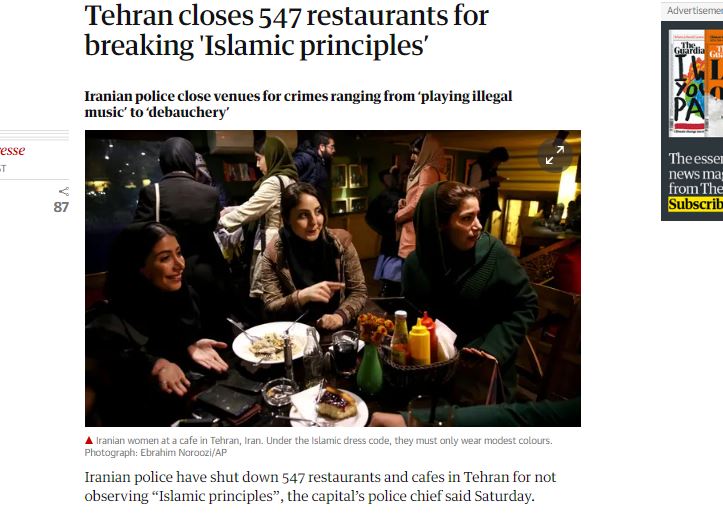 ‘ইসলামিক নীতিমালা’ লঙ্ঘন, ইরানে ৫ শতাধিক রেস্তোরাঁ বন্ধ