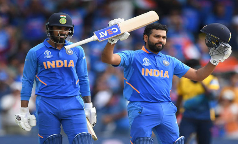 ৯৪ বলে ১৪টি চার ও ২টি ছক্কার সাহায্যে ১০৩ রান করেছেন রোহিত। এটি রোহিতের হ্যাটট্রিক সেঞ্চুরি। এর আগে ইংল্যান্ডের বিপক্ষে ১০২ ও বাংলাদেশের বিপক্ষ ১০৪ রান করেন রোহিত। এবারের বিশ্বকাপে রোহিতের এটি পঞ্চম সেঞ্চুরি। বিশ্বকাপের ইতিহাসে রোহিতই প্রথম ব্যাটসম্যান যিনি এক আসরে পাঁচটি সেঞ্চুরি করলেন। অপর ওপেনার লোকেশ রাহুল করেছেন ১১১ রান।