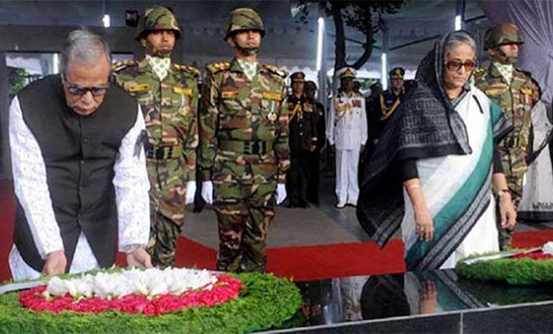 শোক দিবসে বঙ্গবন্ধুর প্রতিকৃতিতে রাষ্ট্রপতি ও প্রধানমন্ত্রীর শ্রদ্ধা নিবেদন