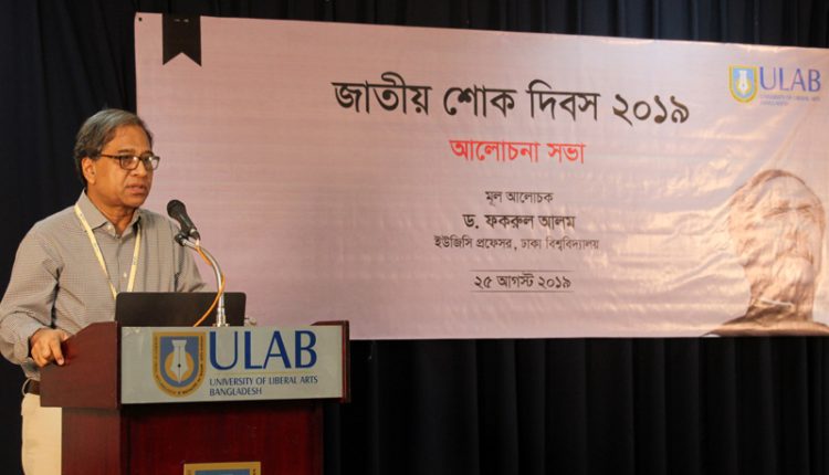ঢাকা: ইউনিভার্সিটি অব লিবারেল আর্টস বাংলাদেশ (ইউল্যাব) যথাযোগ্য মর্যাদায় জাতির জনক বঙ্গবন্ধু শেখ মুজিবুর রহমানের শাহাদাত বার্ষিকী ও জাতীয় শোক দিবস উপলক্ষে ২৫ আগস্ট বিকালে ধানমন্ডিতে ইউল্যাব অডিটোরিয়ামে এক শোকসভার আয়োজন করে।