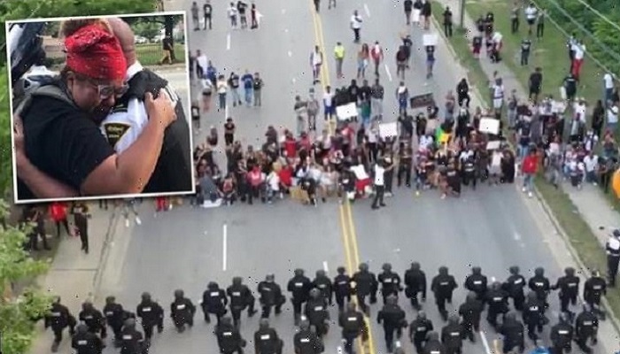 হাঁটুগেড়ে বসে আন্দোলনকারীদের সামনে কাঁদলেন মার্কিন পুলিশ