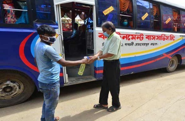 ঢাকা: করোনা ভাইরাস মহামারীর কারণে দীর্ঘদিন বন্ধ ছিল গণপরিবহন। এমন পরিস্থিতি ৬০ শতাংশ ভাড়া বৃদ্ধি করে ৫০ শতাংশ যাত্রী নিয়ে গণপরিবহন চালানোর অনুমতি দেয় সরকার। তবে শর্ত একটাই স্বাস্থ্যবিধি মেনে চলতে হবে। এর মধ্যে প্রধান শর্ত ছিল হ্যান্ড স্যানিটাইজার ব্যবহারের মাধ্যমে যাত্রীদের হাত জীবাণুমুক্ত করা।