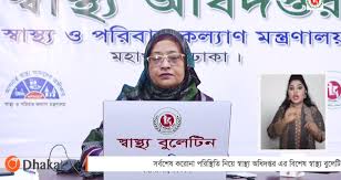 মঙ্গলবার দুপুরে করোনাভাইরাসের সর্বশেষ তথ্য নিয়ে স্বাস্থ্য অধিদফতরের নিয়মিত অনলাইন ব্রিফিংয়ে অধিদফতরের অতিরিক্ত মহাপরিচালক (প্রশাসন) অধ্যাপক ডা. নাসিমা সুলতানা এসব তথ্য জানান।