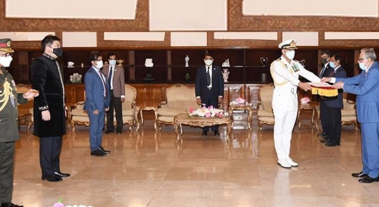 পররাষ্ট্র সচিব মাসুদ বিন মোমেন, রাষ্ট্রপতির কার্যালয়ের সচিব সম্পদ বড়ুয়া, সামরিক সচিব মেজর জেনারেল এস এম শামিম উজ জামান, রাষ্ট্রপতির প্রেস সচিব মো. জয়নাল আবেদীন, সচিব (সংযুক্ত) মো. ওয়াহিদুল ইসলাম খান এসময় উপস্থিত ছিলেন।